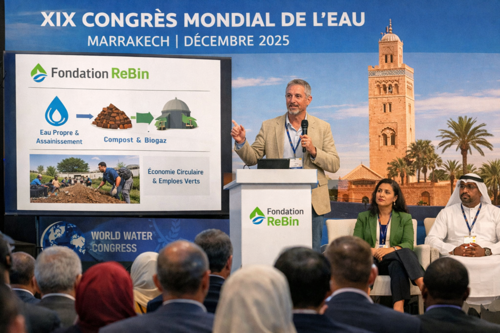 From December 1st to 5th, 2025, the ReBin Foundation for Sustainable Development was represented at the 19th World Water Congress, held in Marrakech, one of the major international gatherings dedicated to the challenges of water, sanitation, and climate resilience.